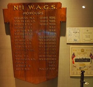 On an honours board which Wing Commander Fairbairn had erected at the entrance of the administrative block are the names of many winners of D.F.C.’s, George Medals, D.F.M.’s and a U.S. Silver Star.[ Article from TROVE]